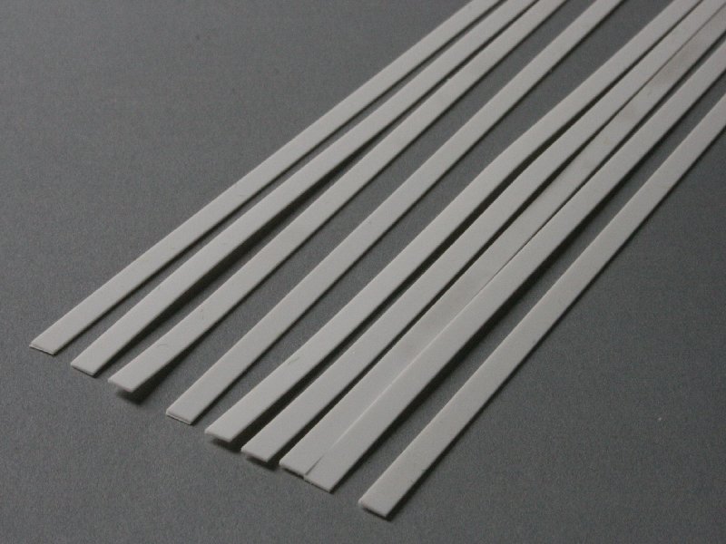 Streifen aus durchgefärbtem weissem Polystyrol gefräst.