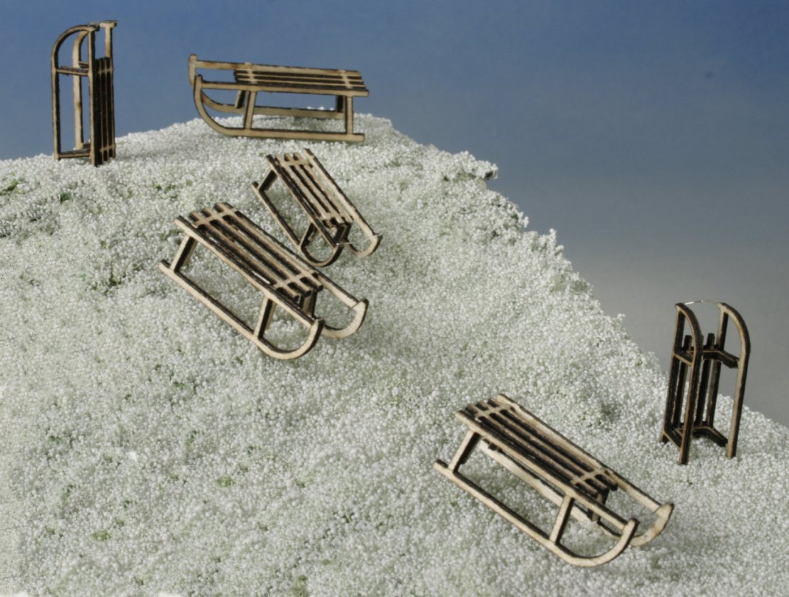 6 Holzschlitten in 2 verschiedenen Größen. Eine schöne Ergänzung
