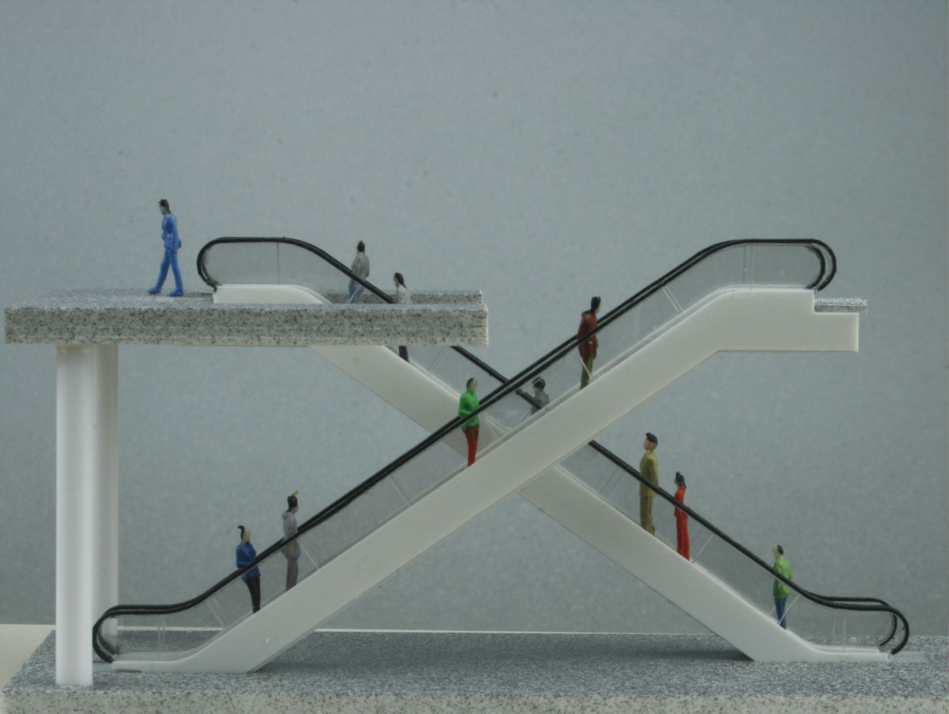 Der Bausatz enthält 22 Einzelteile für 2 Rolltreppen für eine Geschosshöhe von 30,9 mm oder 6,80 m.