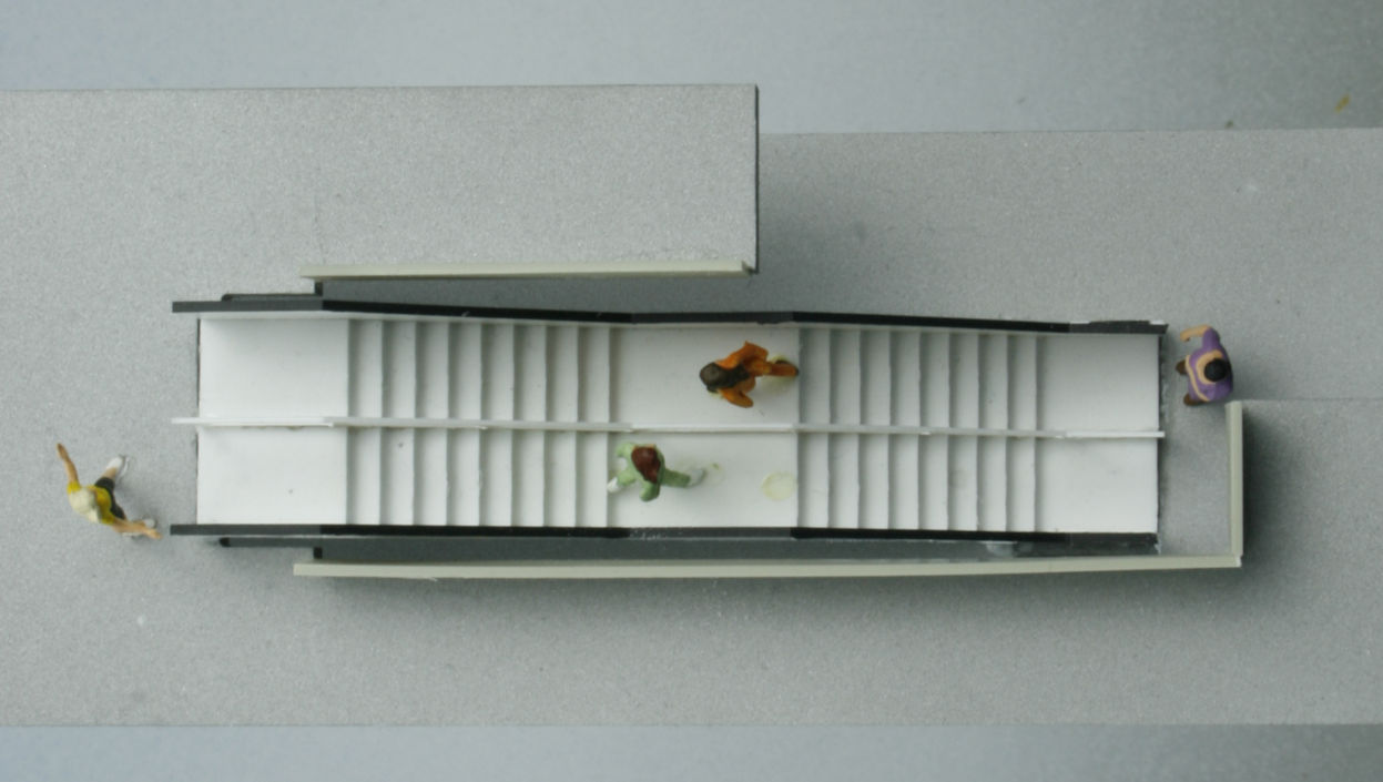 Eine 2-läufige Treppe mit Mittelgeländer für eine Geschosshöhe von 15,5 mm oder 3,40 m.